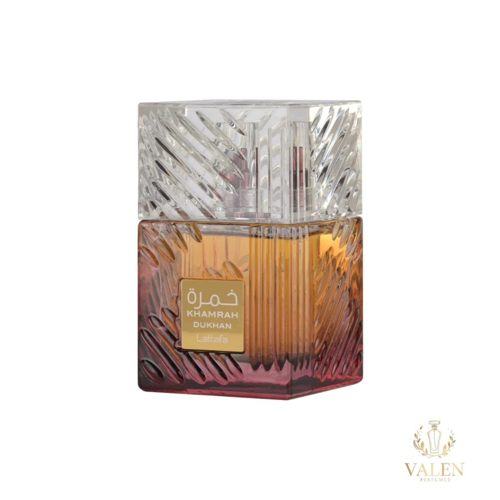 Khamrah Dukhan es una fragancia compleja y emocional que refleja la rica herencia cultural detrás de su nombre. Al aplicar esta fragancia, las notas de salida de mandarina, pimiento y especias ahumadas capturan la atención, evocando la esencia del Levante. A medida que se desarrolla, el corazón de jara, flor de naranjo, incienso y pachulí añade profundidad y misterio. Finalmente, las notas de fondo de tabaco, ámbar, haba tonka, benjuí y praliné crean un cierre intenso y seductor, perfecto para aquellos que buscan una fragancia con carácter.
