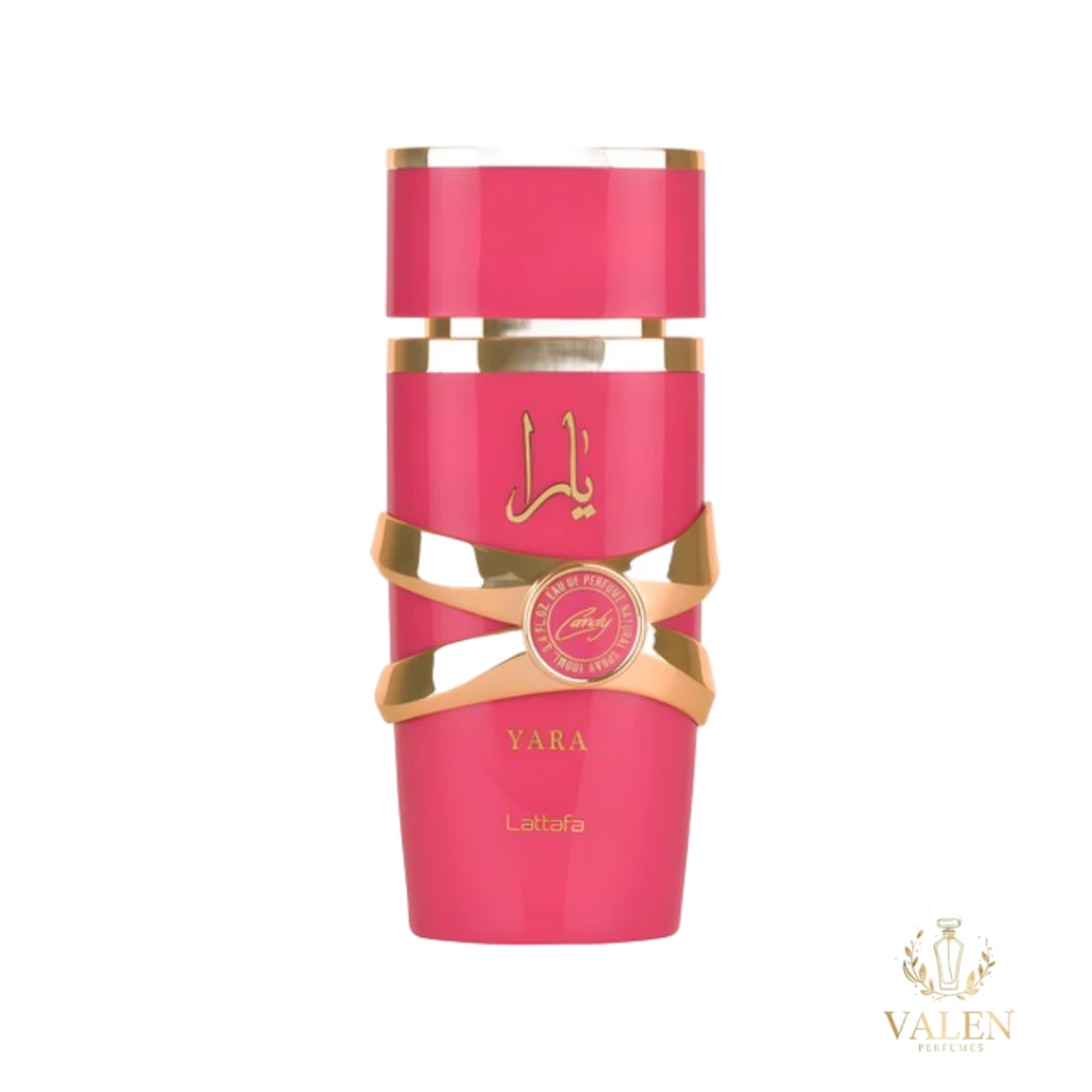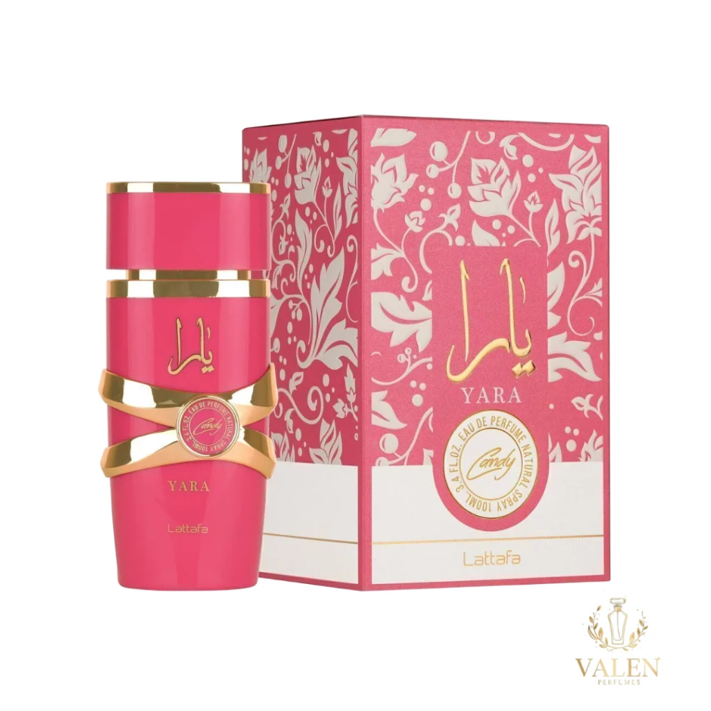 Yara Candy de Lattafa Perfumes es una fragancia floral frutal gourmand diseñada para mujeres. Lanzada en 2024, esta esencia combina notas de grosellas negras y mandarina verde en su apertura, seguida de un corazón dulce con strawberry fizz candy y gardenia. Su base, aunque no especificada, seguramente aporta profundidad y sensualidad a este aroma cautivador.